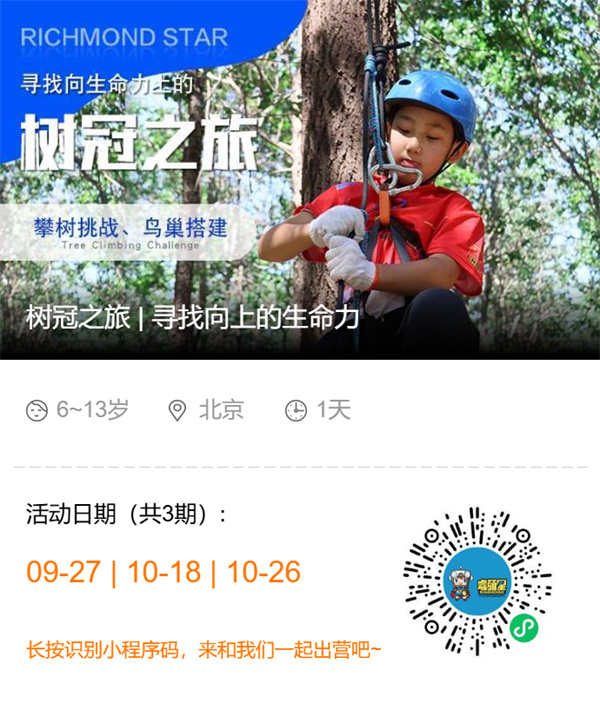 「北京户外」2025单日攀树-树冠之旅周末营(1天)变身炫酷蜘蛛侠,找到生命向上的力量!