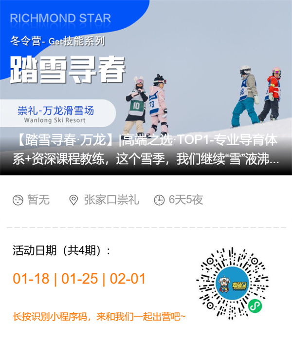 「河北体育」2026崇礼万龙踏雪寻春滑雪冬令营(6天)单双板 | 专属滑雪装备,权威高质雪场