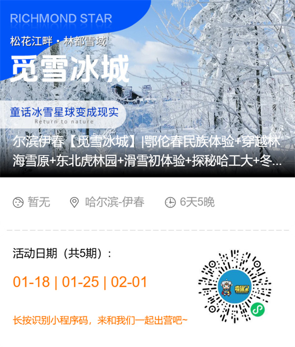 「黑龙江研学」2026哈尔滨伊春觅雪冰城独立/亲子冬令营(6天)东北虎林园+滑雪初体验