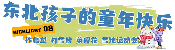 打雪仗、剪窗花、包饺子、雪地摔跤
