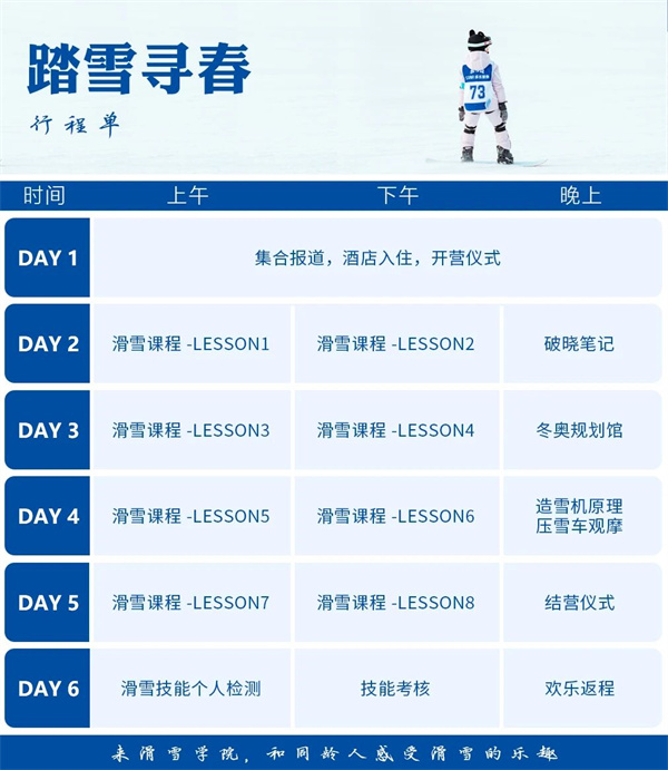 【踏雪寻春】滑雪学院独立打造的科学滑雪体系,2026全面升级,根据孩子实际水平分层教学。