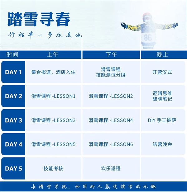 【踏雪寻春】滑雪学院独立打造的科学滑雪体系,2026全面升级,根据孩子实际水平分层教学。