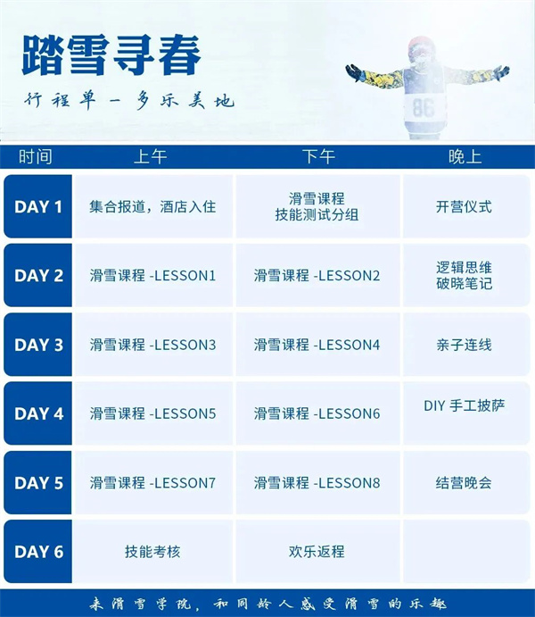 【踏雪寻春】滑雪学院独立打造的科学滑雪体系,2026全面升级,根据孩子实际水平分层教学。