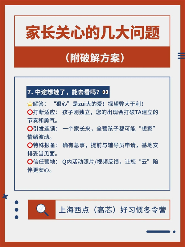 解答:不建议探望,避免打断适应过程。营地反馈照片视频,实现“云陪伴”。