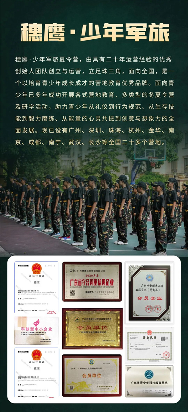 穗鹰,拥有十余年办营经验,赢得了无数好评。今年国庆,特此推出国庆营,快让您的孩子一起加入,在“热血沙场”中冲锋陷阵、披荆斩棘,无所畏惧!
