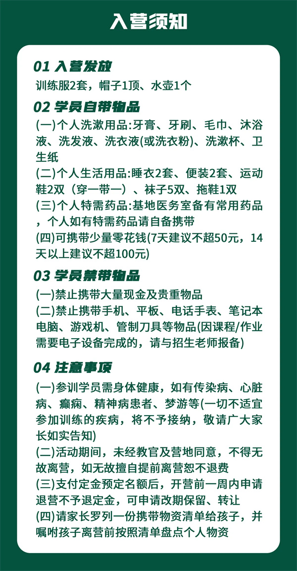 2、开营前一周申请退订,原路退款订金,不收取任何费用
