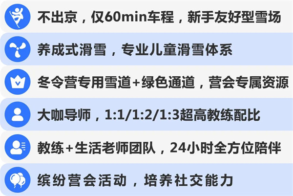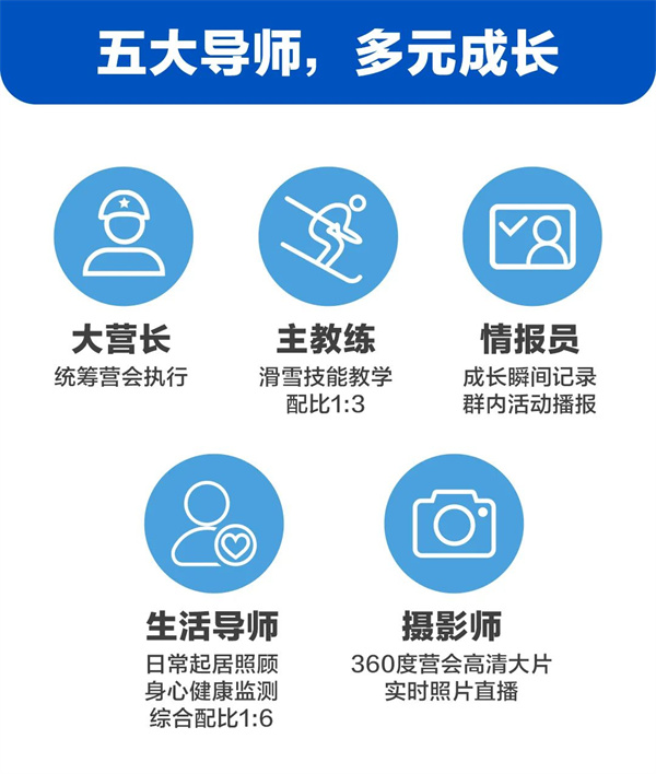 4.滑雪教练费用:营会期间专业滑雪教练1:3/1:2/1:1配比;