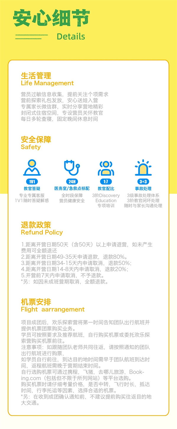 项目成团后,欢乐探索营将第一时间告知团队出行航班并提供机票团票购买业务。