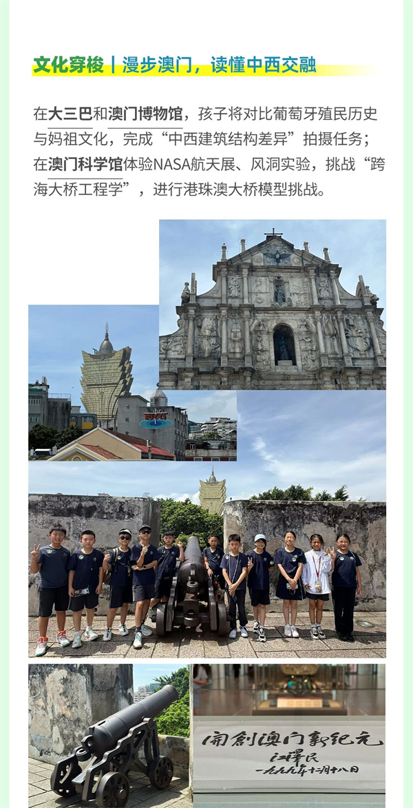 我们带着孩子走进香港、澳门、珠海,穿梭于未来科技与岭南文化之间。从AI机器人到港珠澳大桥,从深海生态到中西建筑。走进名校,进行一场融合科学、文化、环保与创新的研学之旅。