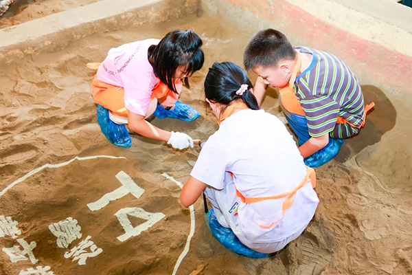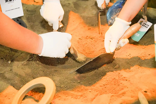 在模拟的考古探方里,孩子们拿起手铲、毛刷,化身为小小考古学家,轻轻刷开历史的尘埃,见证一件件“文物”在手下重现