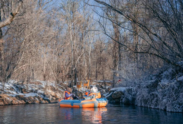 你一定肯定体验过夏天的漂流,但是你知道吗,冬天的漂流更加美丽动人,晶白的雾凇垂挂在枝头,阳光从树枝的间隙中穿过,是无比的震撼与浪漫。
