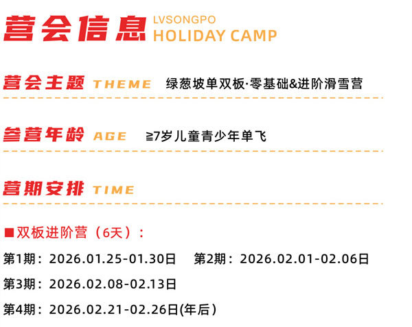 「湖北体育」2026恩施绿葱坡·双板进阶滑雪冬令营(6天)双板独享专属雪道