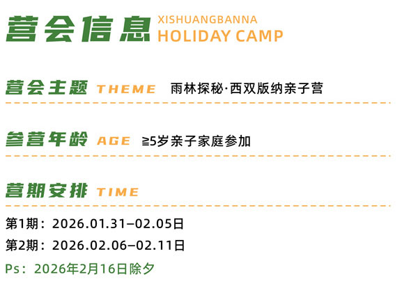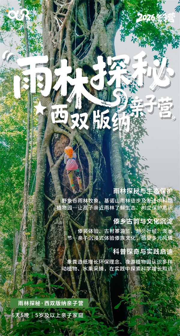 「云南亲子」2026西双版纳·雨林探秘冬令营(6天)于热带风情中,探寻自然与文化的亲子绮梦