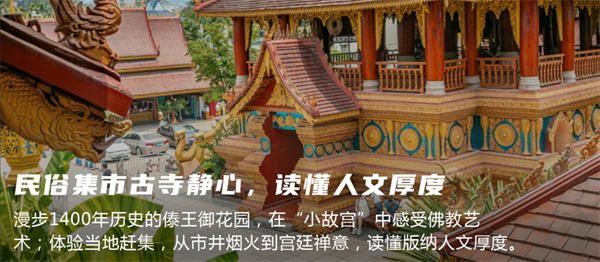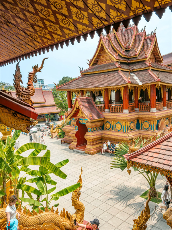 大家可以漫步其中,欣赏鎏金立佛垂眸含笑的庄严法相,观赏精美的龙形雕塑盘绕建筑,感受浓厚的宗教氛围和悠久的历史底蕴,领略南传佛教文化的独特魅力。