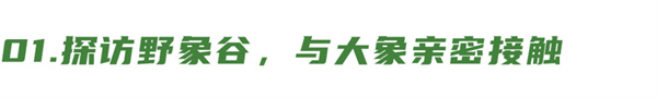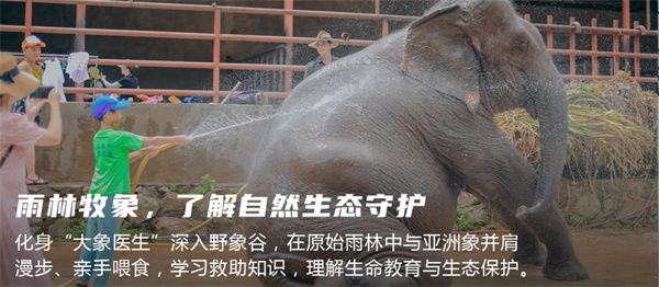 我们将前往野象谷,跟着“象”爸爸(饲养员)的陪同下,与大象一起走进雨林深处,了解它们的生活现状及保护,野外寻踪,跟它们喂食嬉戏。我们希望通过与大象接触,让小朋友们体会到人与自然的和谐共处方式,树立生命与家园保护意识。