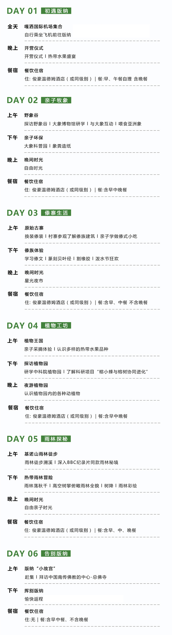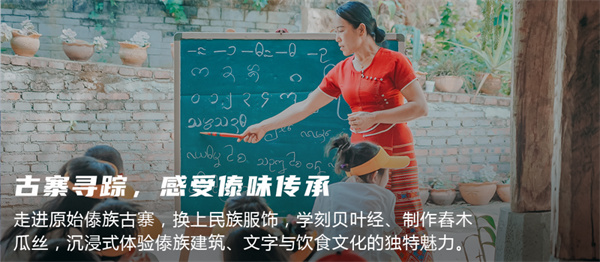 我们换上傣装,化身当地人,踏入传统的傣族古村落中,深入探索这片土地上的人文地理、民俗风情、独特语言和生活方式,村寨参观游览村寨,从建筑、语言、服饰里感受民族风情与习俗,感受原汁原味的傣族生活,亲子共同学做一道傣式小吃——舂木瓜丝,认识一个真实而鲜活的傣族村寨。