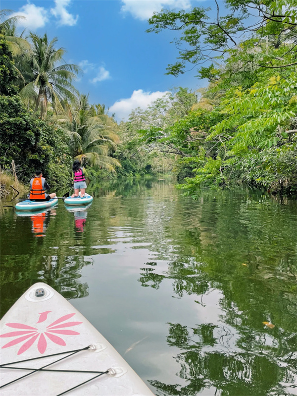 我们置身于风景如画的热带雨林河流之中,踏上浆板,开启一场独特的冒险。孩子们能够近距离观察热带雨林丰富的生态景观,感受微风拂面,聆听鸟儿的歌声和河流的潺潺声,仿佛与大自然融为一体。