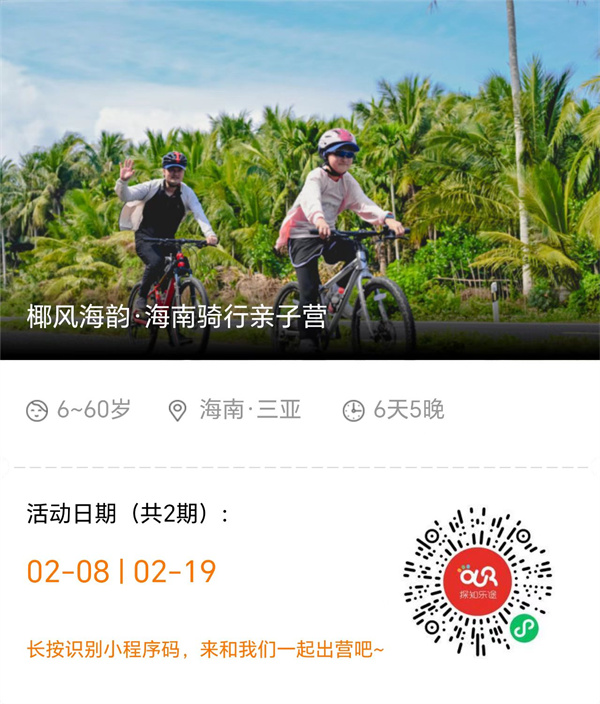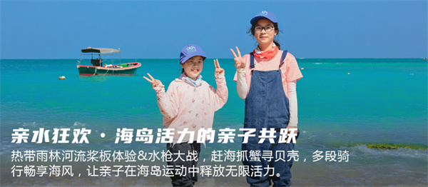 乘着海风,头顶蓝天,椰林在左右,伴着美丽的热带风光。亲子同骑,完成人生中绝无仅有的海岸线骑行挑战。