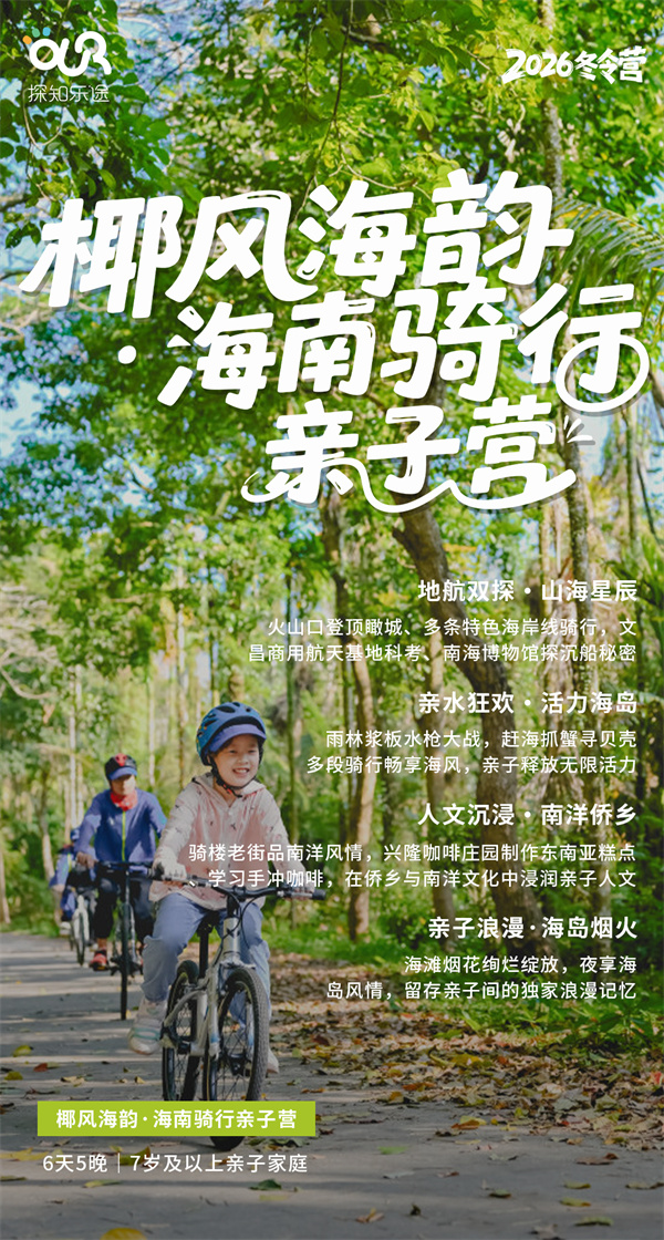 「海南亲子」2026椰风海韵·海南骑行冬令营(6天)定格海南亲子暖冬时光,和孩子共探海南自然奥秘