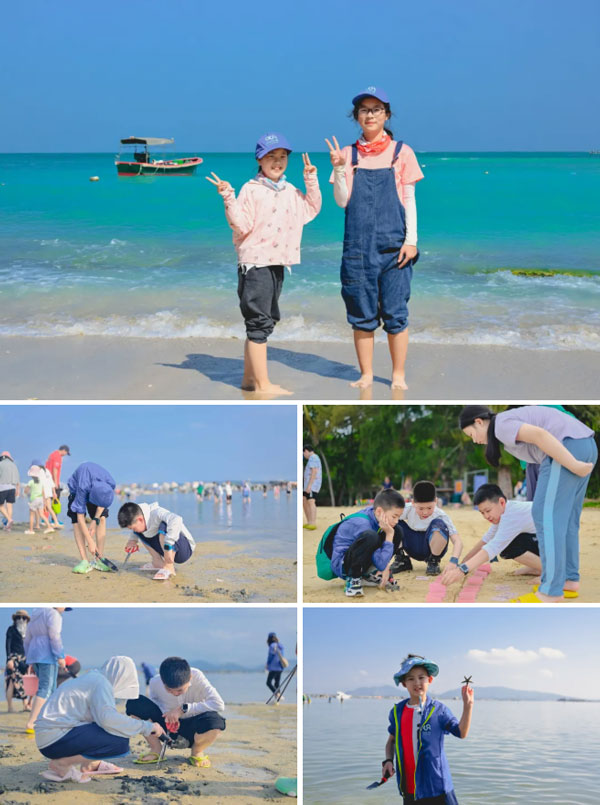 暂别单车,亲子化身为探索者,走向退潮后的滩涂,提着小桶,拿着工具,在沙滩上奔跑、探索,寻找着大海留下的宝藏。螃蟹、贝壳、小鱼…… 每一个发现都将带来无尽的喜悦。