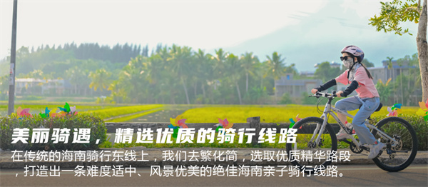 和孩子一起骑行在这条路上,相互鼓励,相互陪伴,放下城市里的喧嚣,享受亲子的那份安宁自在,一路去收获海南的精华……