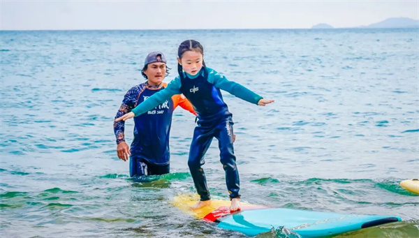 在专业教练的指导下,学习冲浪的基础理论与安全知识。如何在板上平稳趴伏、如何观察与选择一道合适的浪、最关键的是,如何在恰到好处的时机运用腰腹与腿部的力量,完成从趴伏到站立的关键一跃。而这对少年们不仅是技巧的学习,更是对身体协调性、核心力量和瞬间判断力的综合锻炼。(*也可选择体验热带雨林桨板项目)