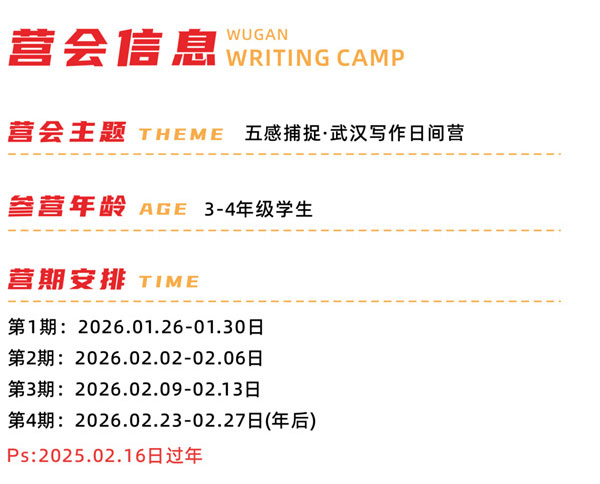 「湖北学能」2026武汉五感捕捉·写作日间走读冬令营(5天)让孩子打开五感之门,写出“会呼吸的作文”