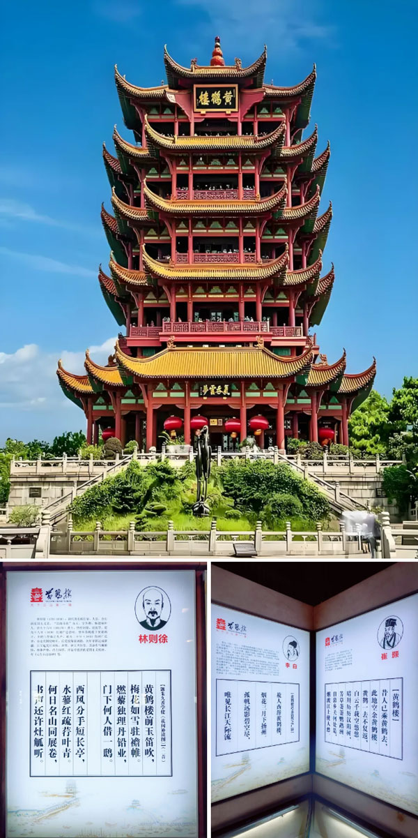 登临黄鹤楼,一场 “实景观察与写景创作” 的诗意之旅就此展开。我们拾级而上,分楼层捕捉立体风景:远观长江浩浩荡荡、两岸风光尽收眼底,近赏飞檐翘角的古建细节、雕梁画栋的精巧工艺;静听江风拂过檐角的轻响,动看轮渡鸣笛划破江面的灵动。