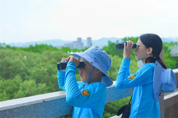 孩子们近距离观察红树林,辨识红树林物种。感受陆海生态的神奇和多样。学习识别不同的鸟类,了解它们的特征与行为习惯、栖息地偏好等,认识生物多样性对自然生态的重要性。