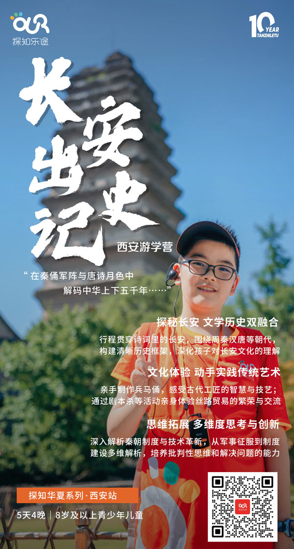 我们将走进这座永恒之城,以五大主题维度展开深度研学:诗词里的长安、中国历史朝代脉络、丝路贸易、秦大统一、人文美食。带领孩子们以少年之眼观文明之源,用脚步丈量三千年古都,在青铜铁器间触摸历史温度,于诗词歌赋中感受文化脉动。这既是一场穿越时空的对话,更是一次文化自信的觉醒之旅!