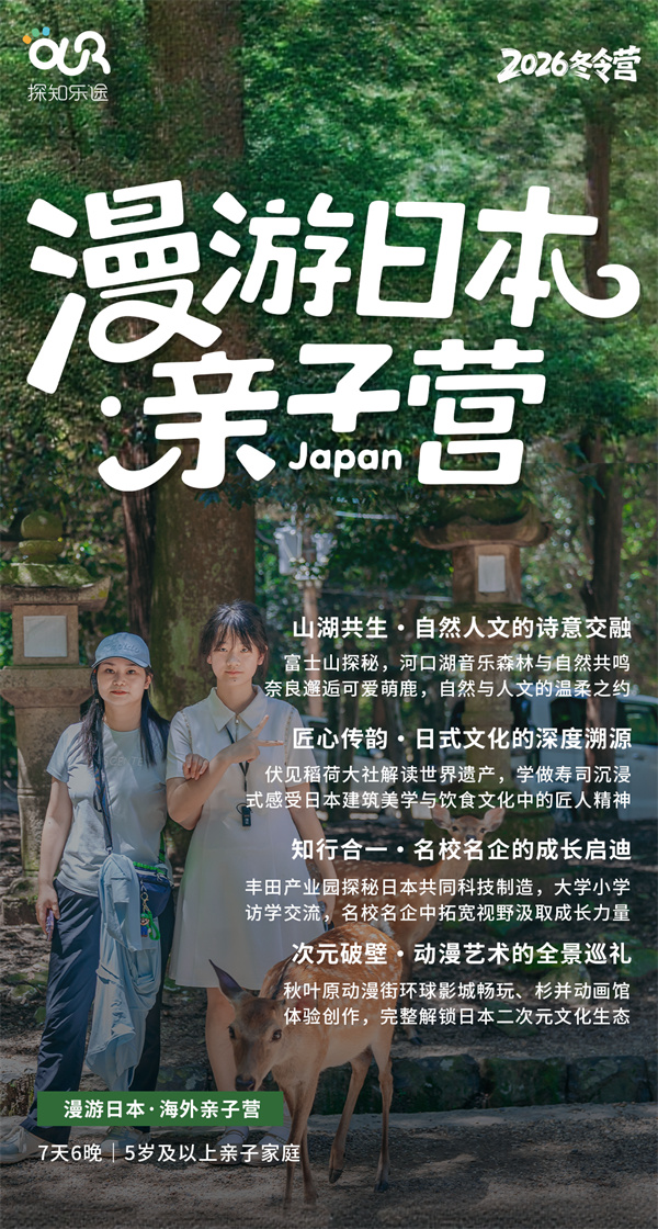 「亚洲游学」2026漫游日本亲子冬令营(7天)东京、镰仓、富士山、奈良、大阪五大地区深度探索