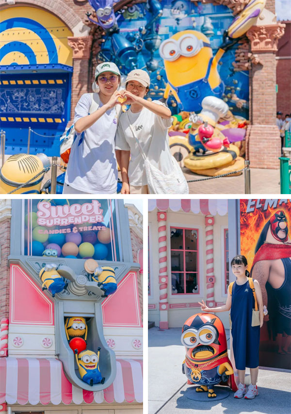 在这个园区,我们可以体验到小黄人调皮闹剧乘车游、冰冻雷射光束乘车游等独特的游乐设施,还可以参与到小黄人主题的游行和街头表演中,感受小黄人的独特魅力。