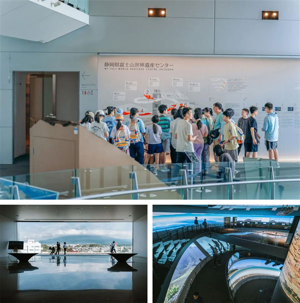 富士山世界遗产中心建筑呈一个“倒富士”形状,在这里大家可以深度了解富士山蕴含的日本文化之根。馆内常设攀登参拜之山、狂暴之山、神圣之山、绝美之山、孕育之山以及传承之山六大主题展区。