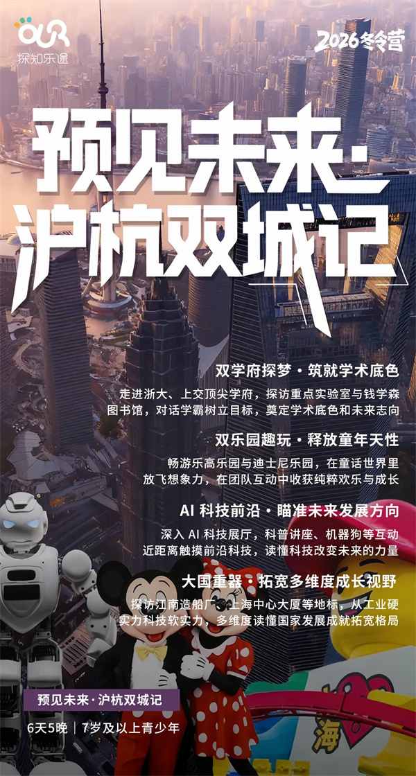 「沪杭研学」2026预见未来·沪杭双城记冬令营(6天)AI高新科技、双乐园畅玩、百年名校