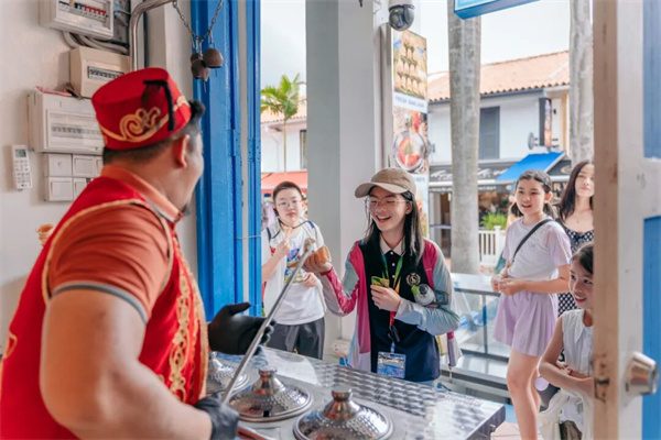 任务结束后,孩子们可以选择自己喜欢的特色美食,品尝海南鸡饭、肉骨茶、印尼烤串,体验东南亚地道的传统美食。