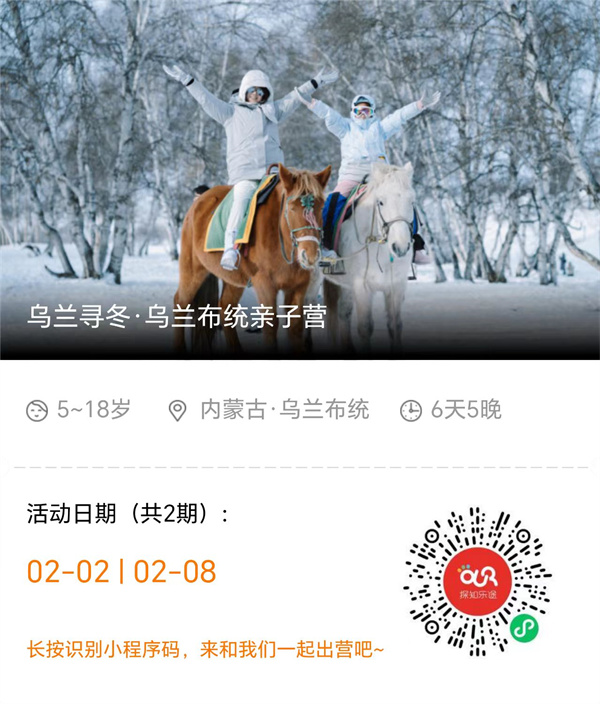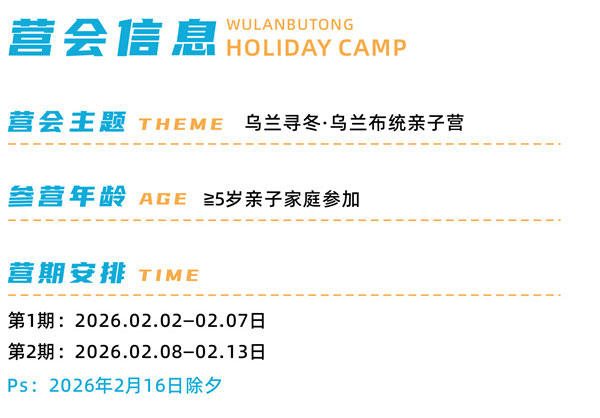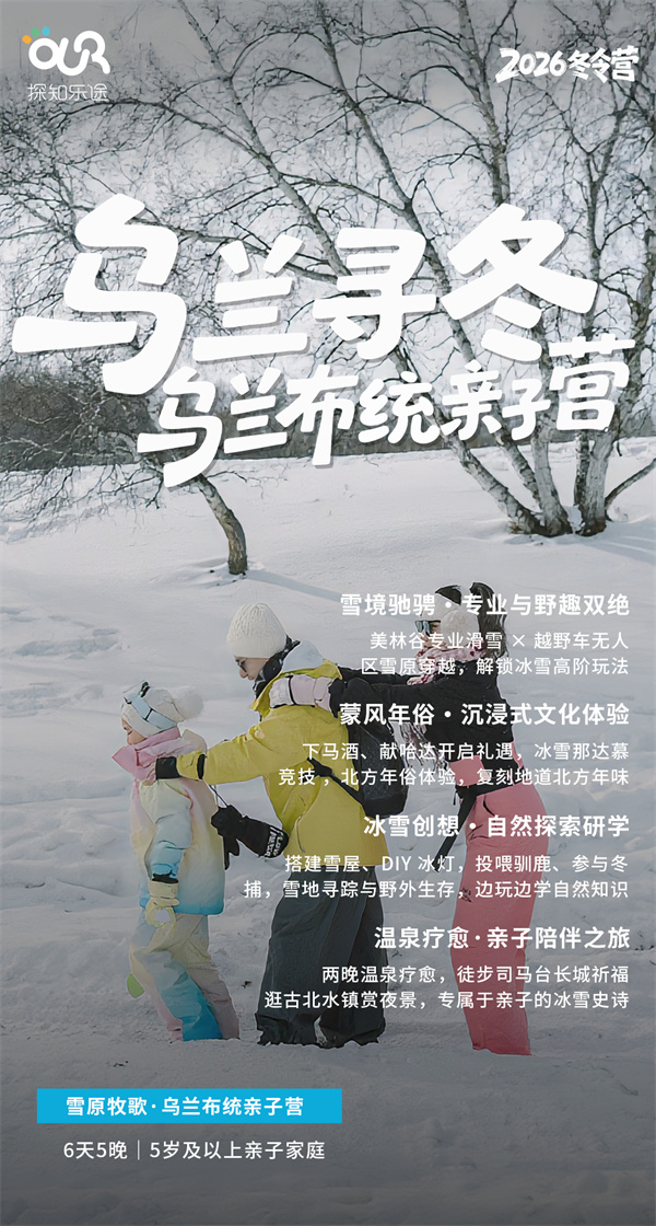 「内蒙古亲子」2026乌兰寻冬·乌兰布统冬令营(6天)滑雪、蒙族游牧、冰雪体验、冬日温泉
