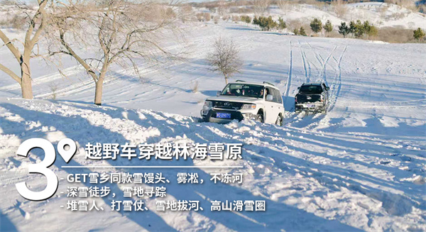 我们还专门设计了雪原穿越的游玩节奏!途中,我们会在草原深处的几个无人秘境风景点停留,一起偶遇雾凇、拜访孤树和白桦林,寻找不冻河的秘密,越过雪丘!