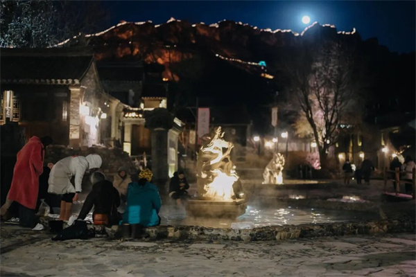 平均40℃左右的水温舒缓身心,袅袅热气与远方巍峨的长城交织成「冰火两重天」的人间仙境。