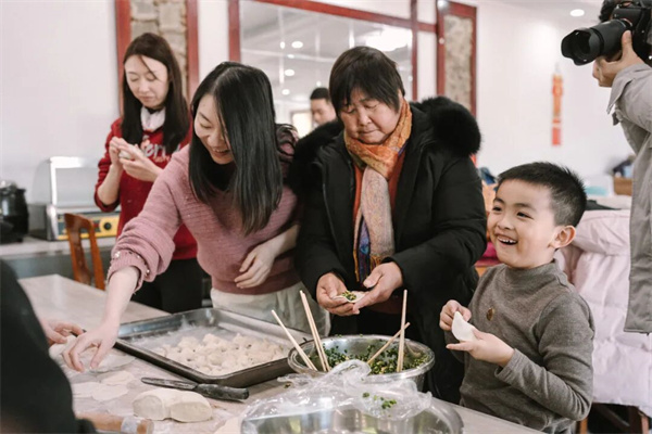 我们设计了一系列小活动,让每个来到这里的大朋友小朋友都可以参与其中,寻找年味!是包饺子时阖家团圆的氛围感,是剪窗花贴对联时喜庆的仪式感,是冰天雪地里吃冻梨和冻柿子的欢乐感……