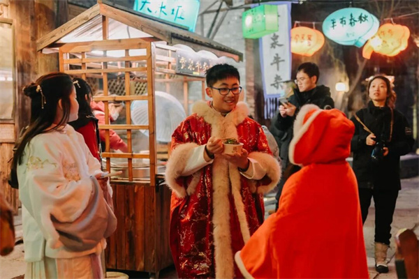 小镇的年味,也舞动在精彩的演出演绎中。 舞龙舞狮、喜庆秧歌、街头杂耍……其中最最不能错过的,就是长城水舞秀和超出圈的无人机灯光秀~
