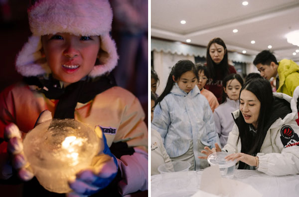 亲自体验一下神奇的泼水成冰吧!这是低于-15℃的限定游戏哦!小朋友们可以一起探讨魔法背后的原理~