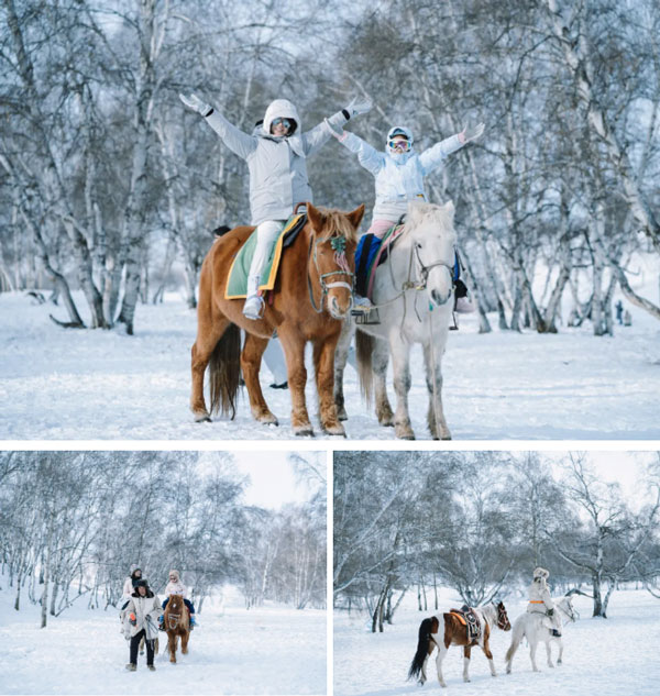 冬季的草原美到失语,马蹄踏碎积雪,我们骑马穿过挂着雾凇的白桦林,就像闯入童话般的白银世界的草原精灵,尊嘟超级出片!