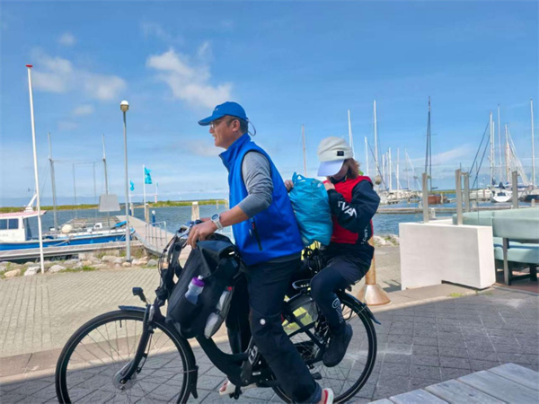(2025年世锦赛,荷兰,训练结束后爸爸带着张云暄正准备从训练基地骑自行车回住所)