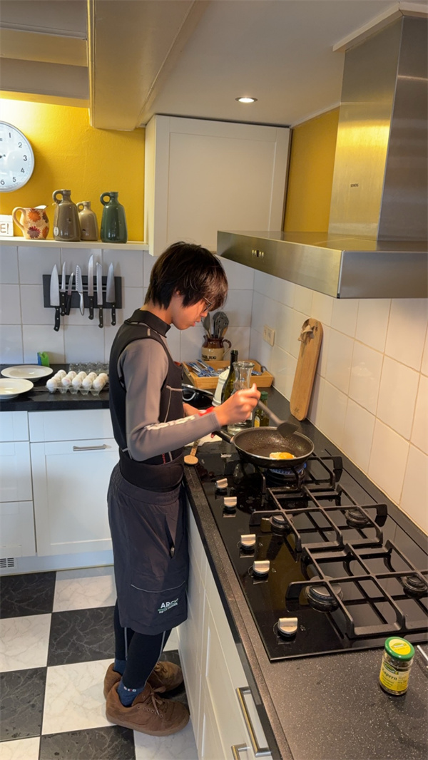 (2025年世锦赛,荷兰,张云旸正在准备早餐)