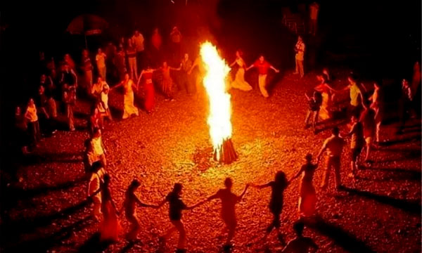 打败了恶龙史矛革,小探险家们非常的高兴。于是大家点燃了火把,手拉手跳起了欢快的舞蹈。
