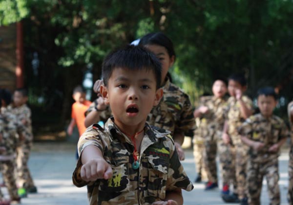 入伍宣誓、军规军姿学习、攀爬术、军体拳、学习枪械、消防救援、投弹练习、特种手语、情报训练、搭建庇护所、小小演说家、生存技能学习、绳结技能学习…