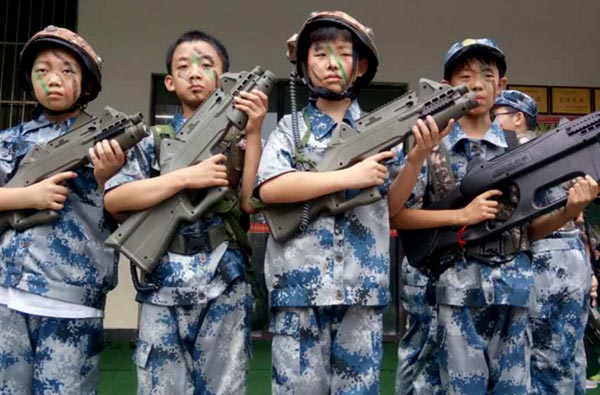 参照部队建制,依据学生年龄和性别将小营员分班,进行封闭式、军事化管理、开展队形、队列、拉练、军体拳、枪械常识、国防教育等活动。