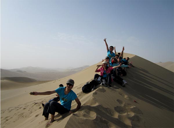 在腾格里沙漠,有高达二三百米的超高沙丘,被称作为天坡,来到沙漠的人必定会挑战一下。勇于挑战,在登上坡顶的那一刻,享受大自然赠与的美景,获得心灵上的成长。登上沙漠顶端的那一刻,阳光越发明媚,天空也更加明亮。
