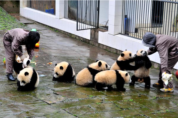 在家里小宝贝们拖地吗?自己洗袜子吗?帮爸爸妈妈们干过家务吗?农活就更不用提了吧!在熊猫基地,经过饲养员老师的指导,孩子们一起给熊猫搬运竹子、打扫圈舍、清理便便……饲养员叔叔要做的事情,孩子们统统体验。