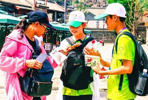 ▲ 古北水镇·"生存"挑战,挑战自我,营员们在向游客推销瓶装水以及纪念品。